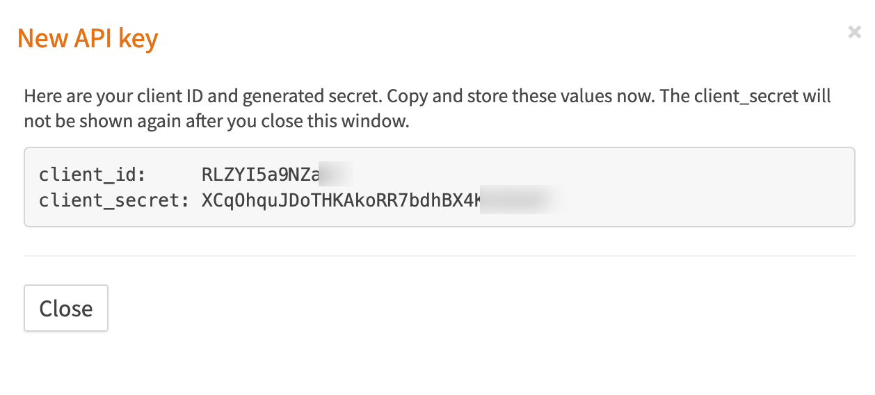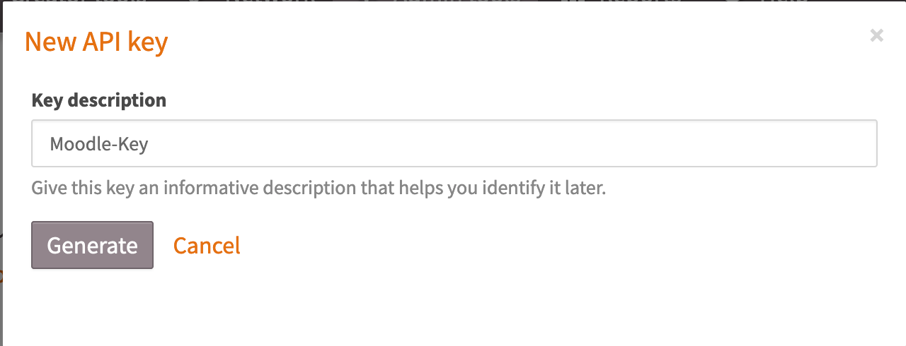 You must first generate your key, click Generate new client secret and set a description for your new key: