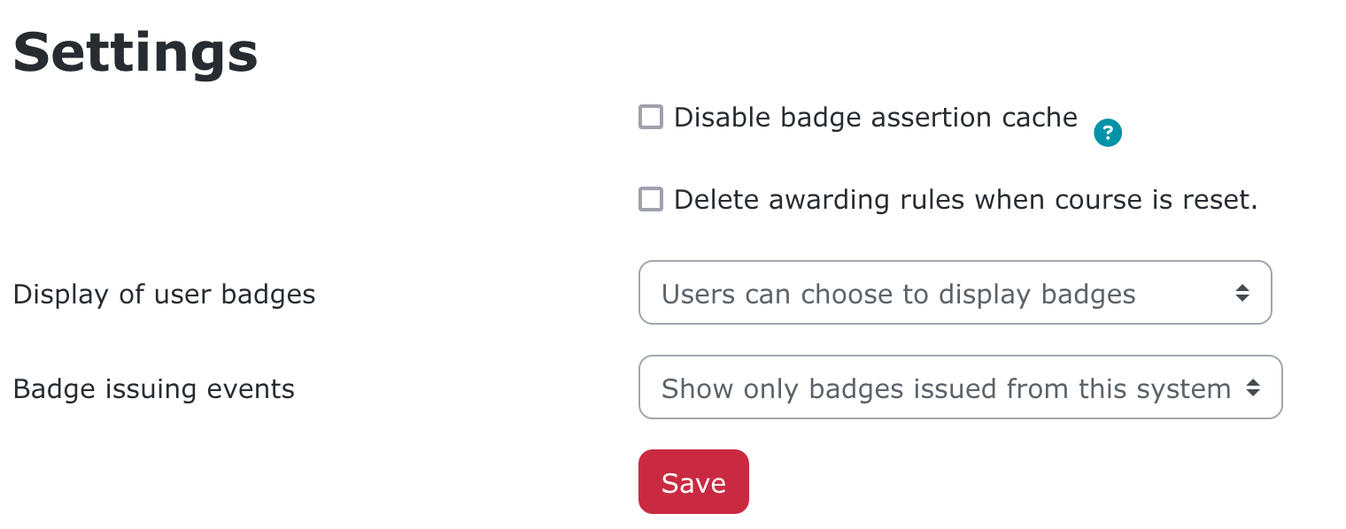 without delay. Note that this could affect the profile page loading performance. - Delete awarding rules when course is reset: for each course you’ll reset, all badges associated rules
