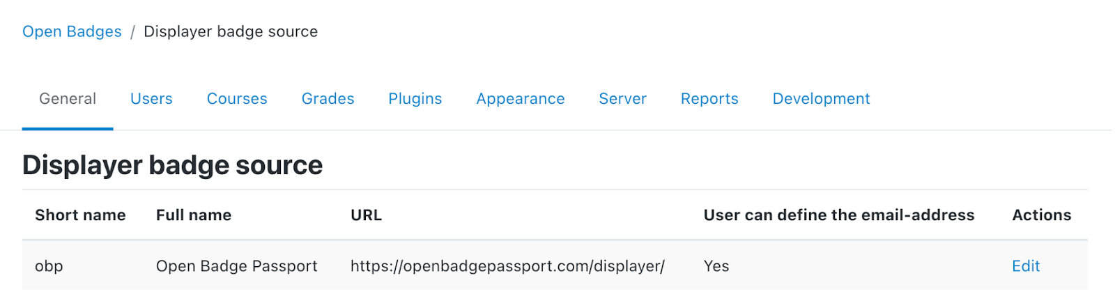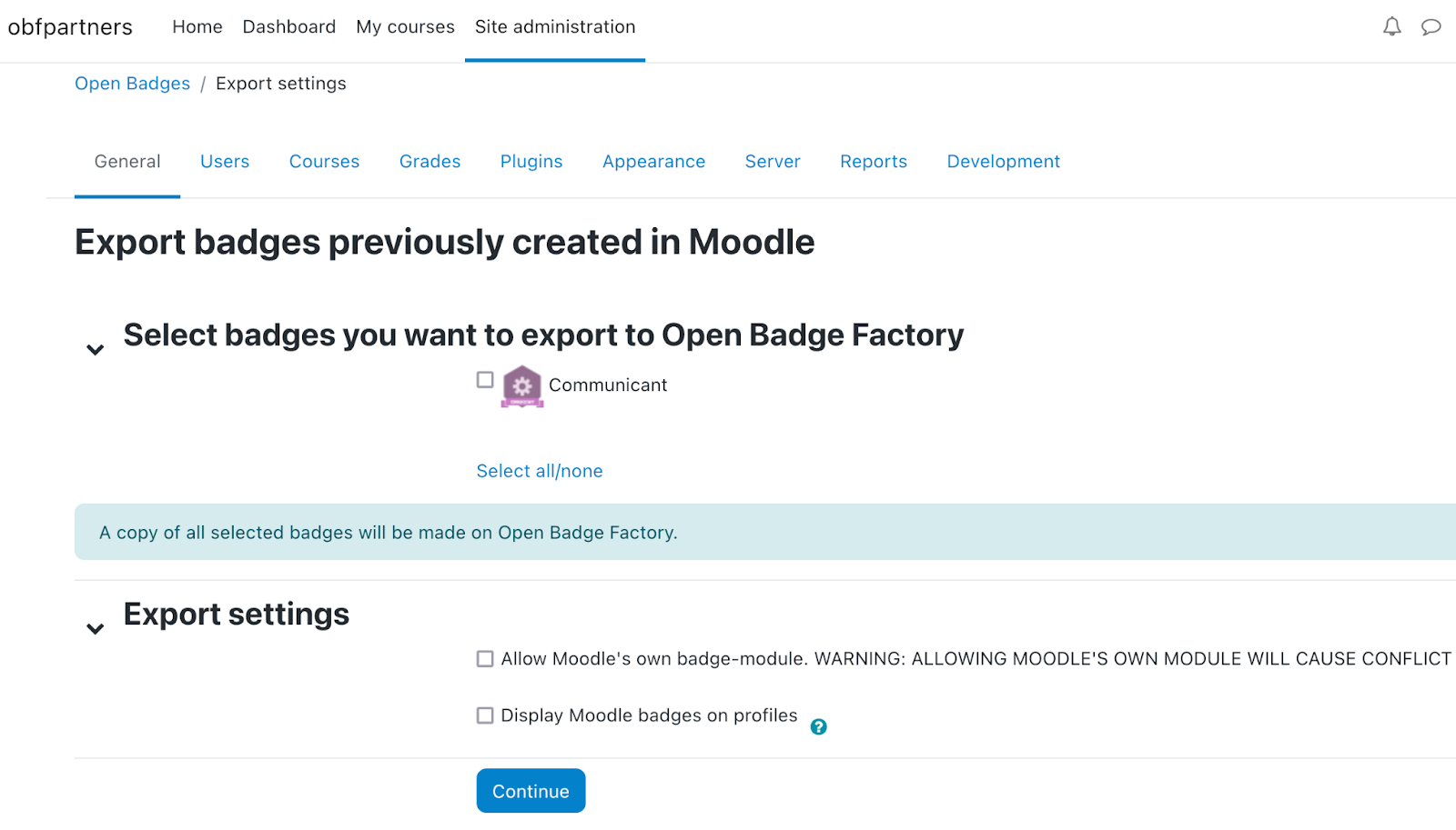 If Moodle’s own badges are found in the system, they can be exported to OBF. The exported badges are