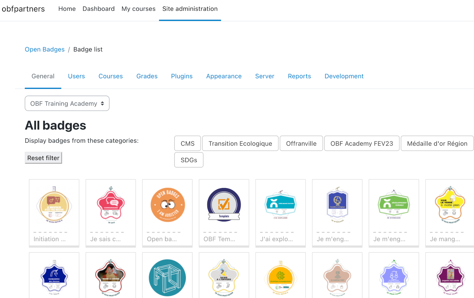 Now the badges from OBF are visible in Site administration → Open Badges → Badge list