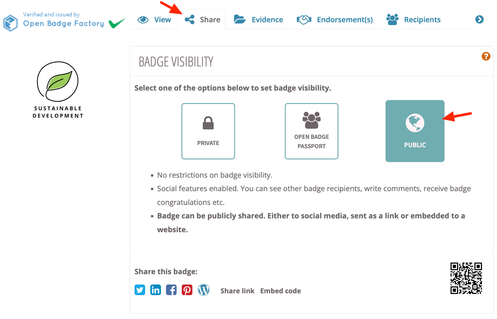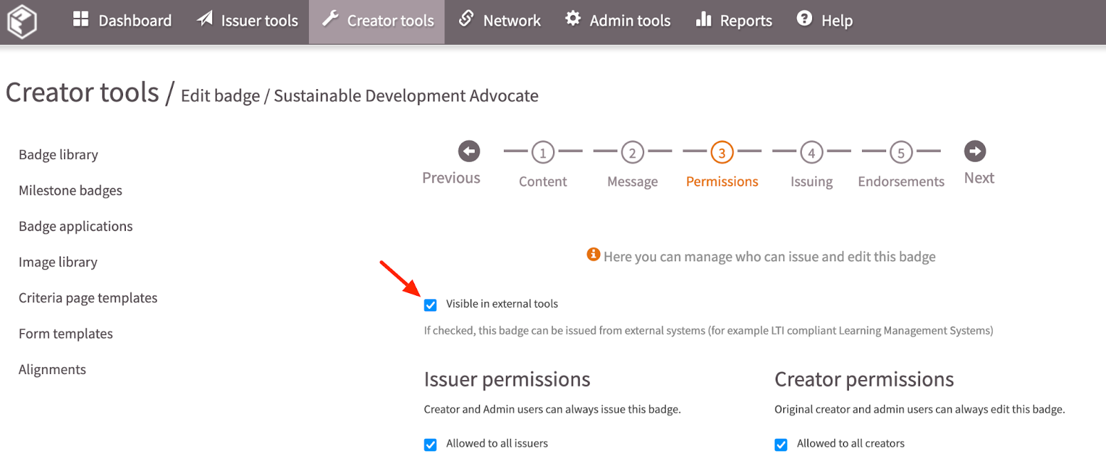 Tip: badges can be excluded from this view, by unchecking the box “Visible in external tools” from your
