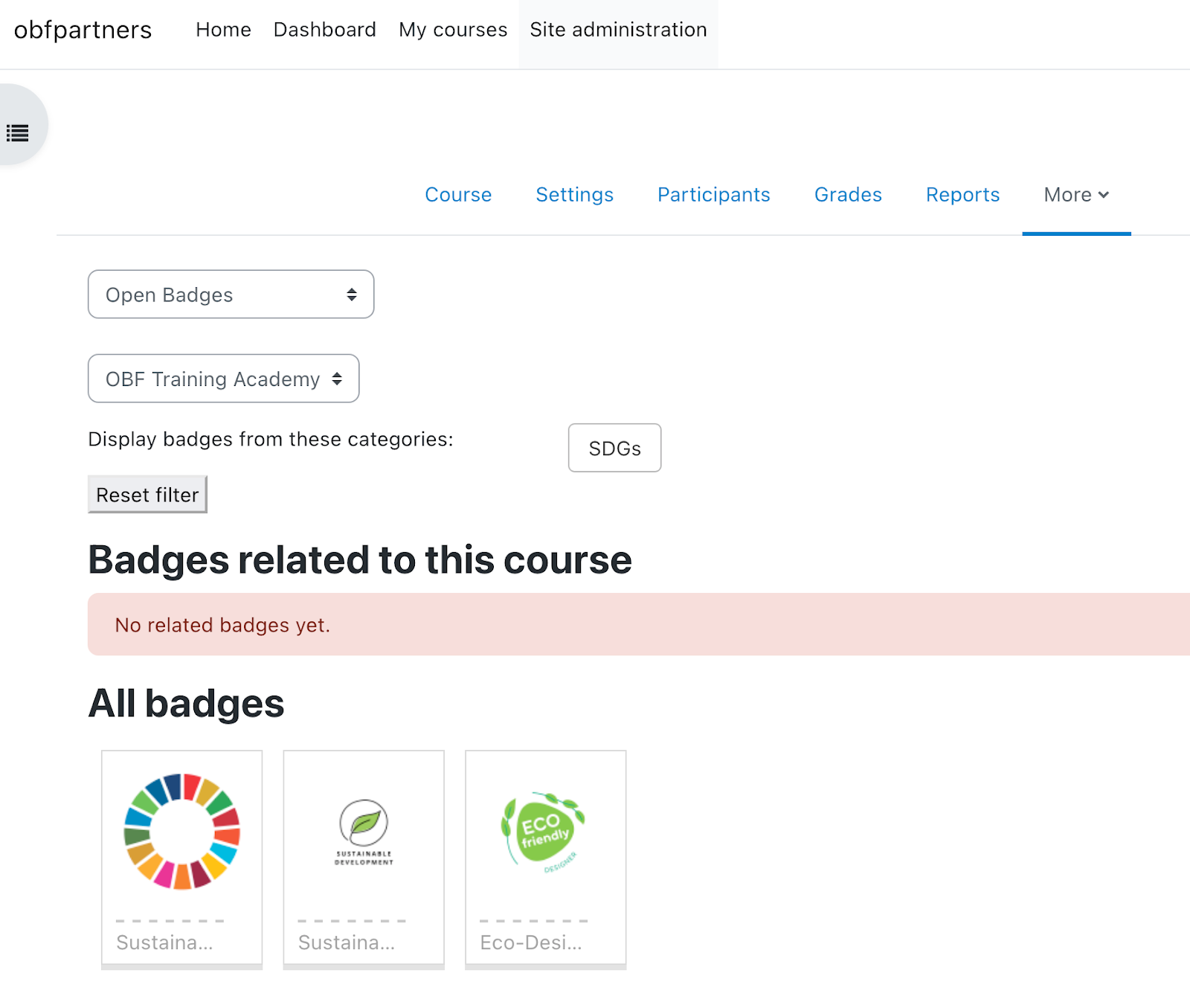 And you want to make those badges available into the related SDGs course category in Moodle.