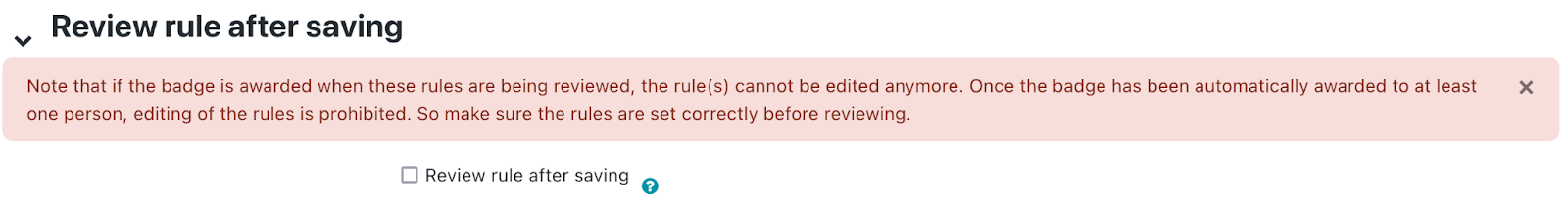 Note! If a badge is issued according to this review, the rule cannot be edited anymore. Make sure the rule is