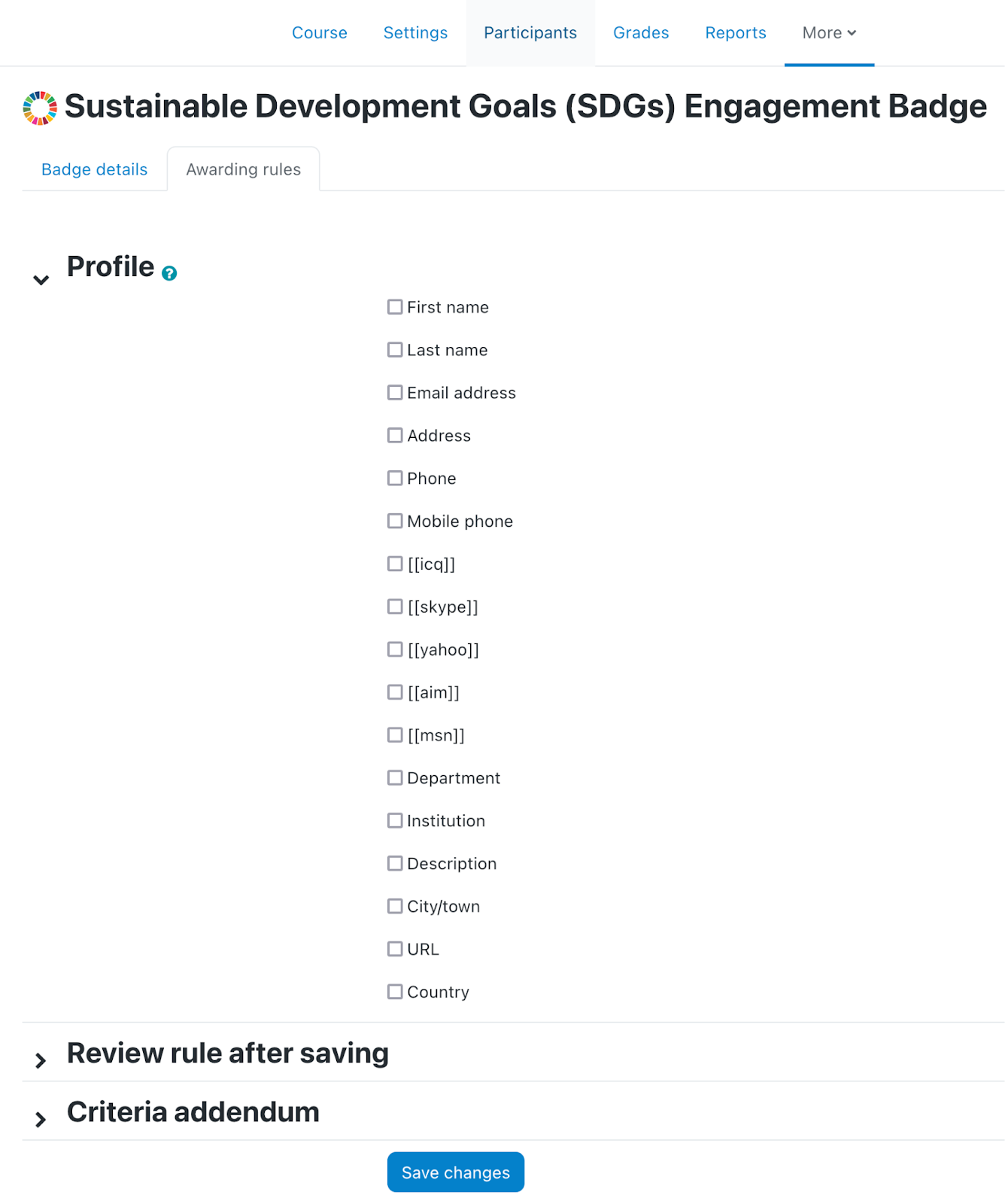 awarding rules which apply to the chosen course. Note that if a badge has awarding rules which apply to