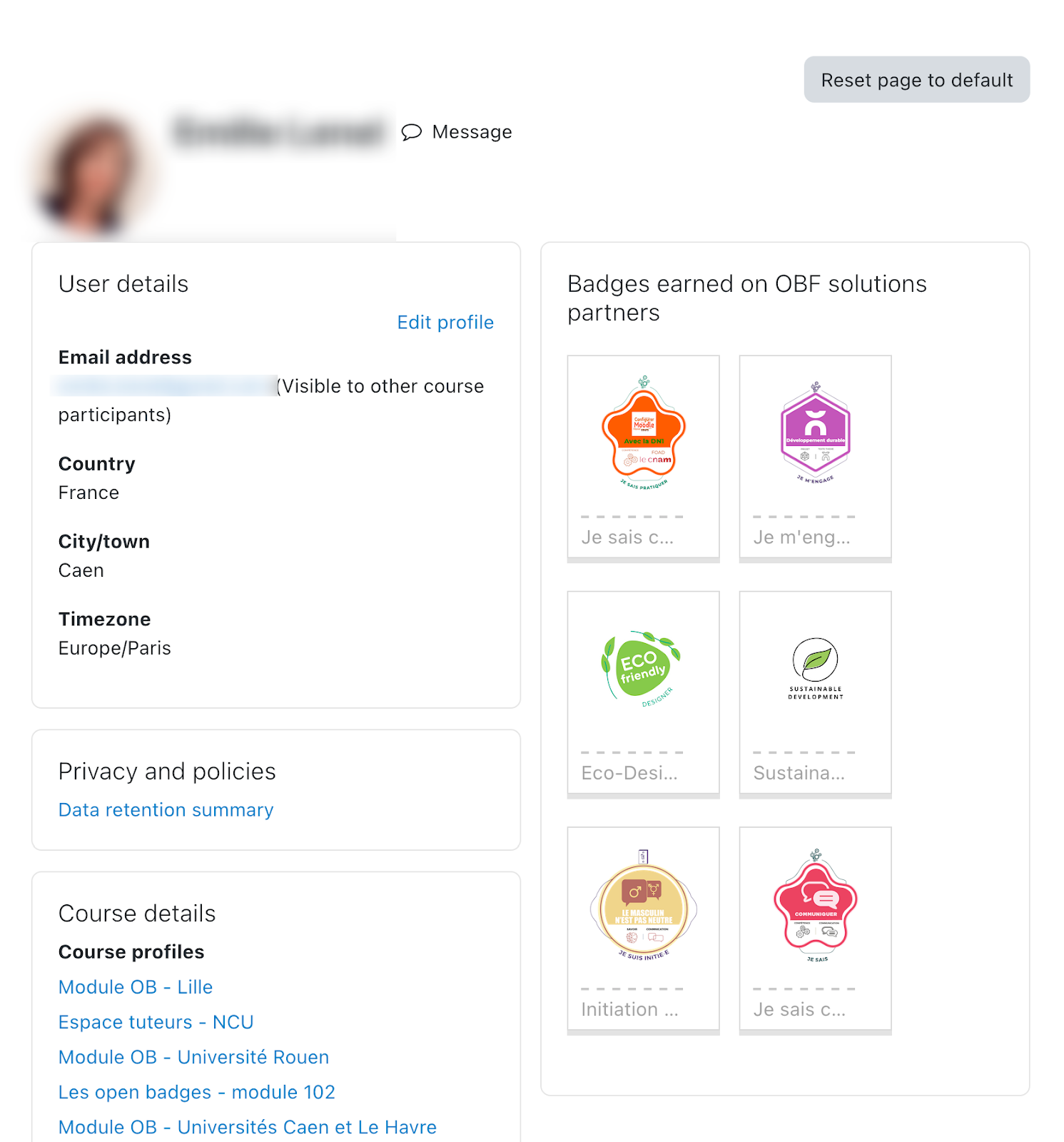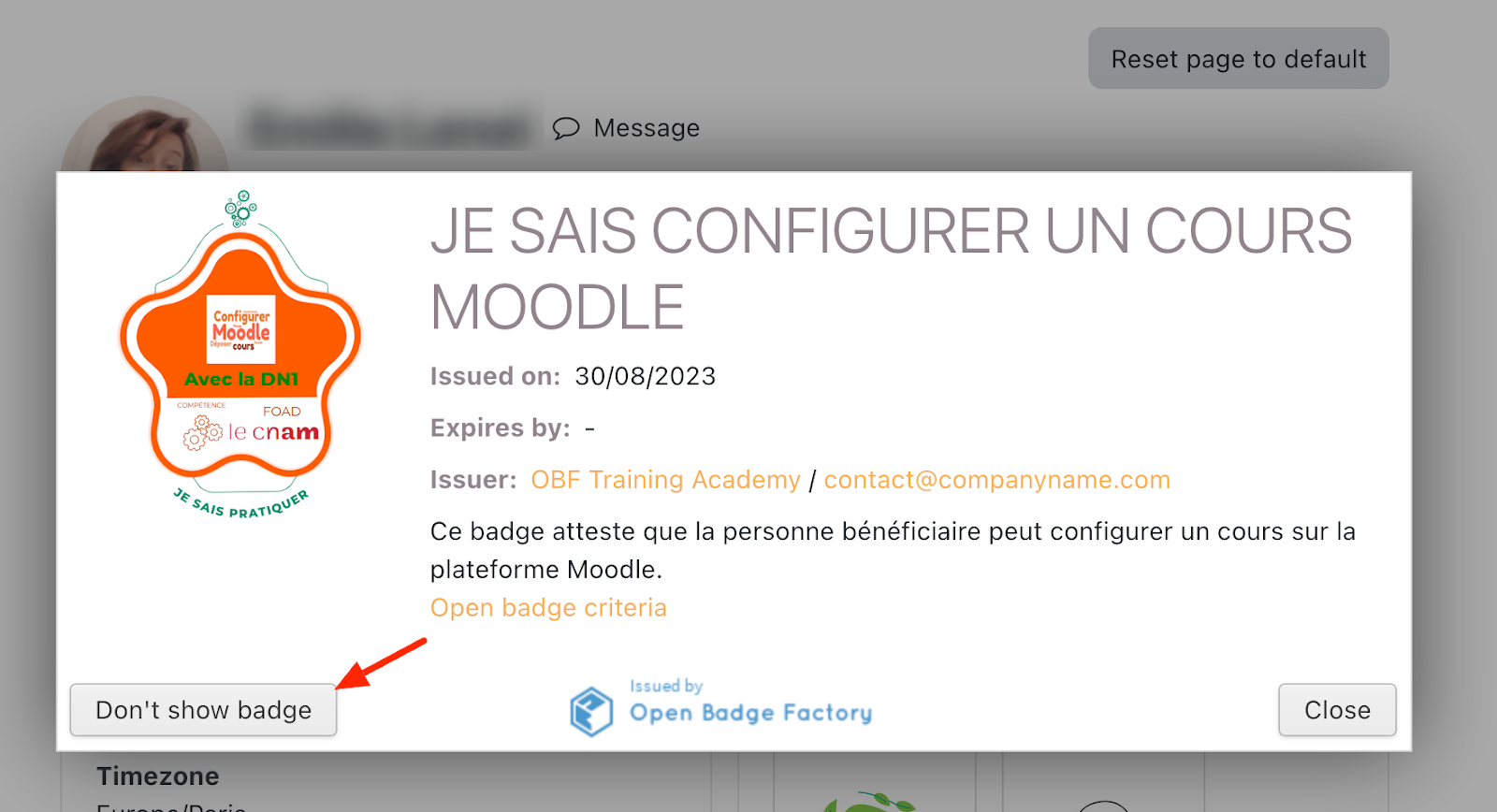 Users having an Open Badge Passport account can also display their badges on their Moodle profile. From