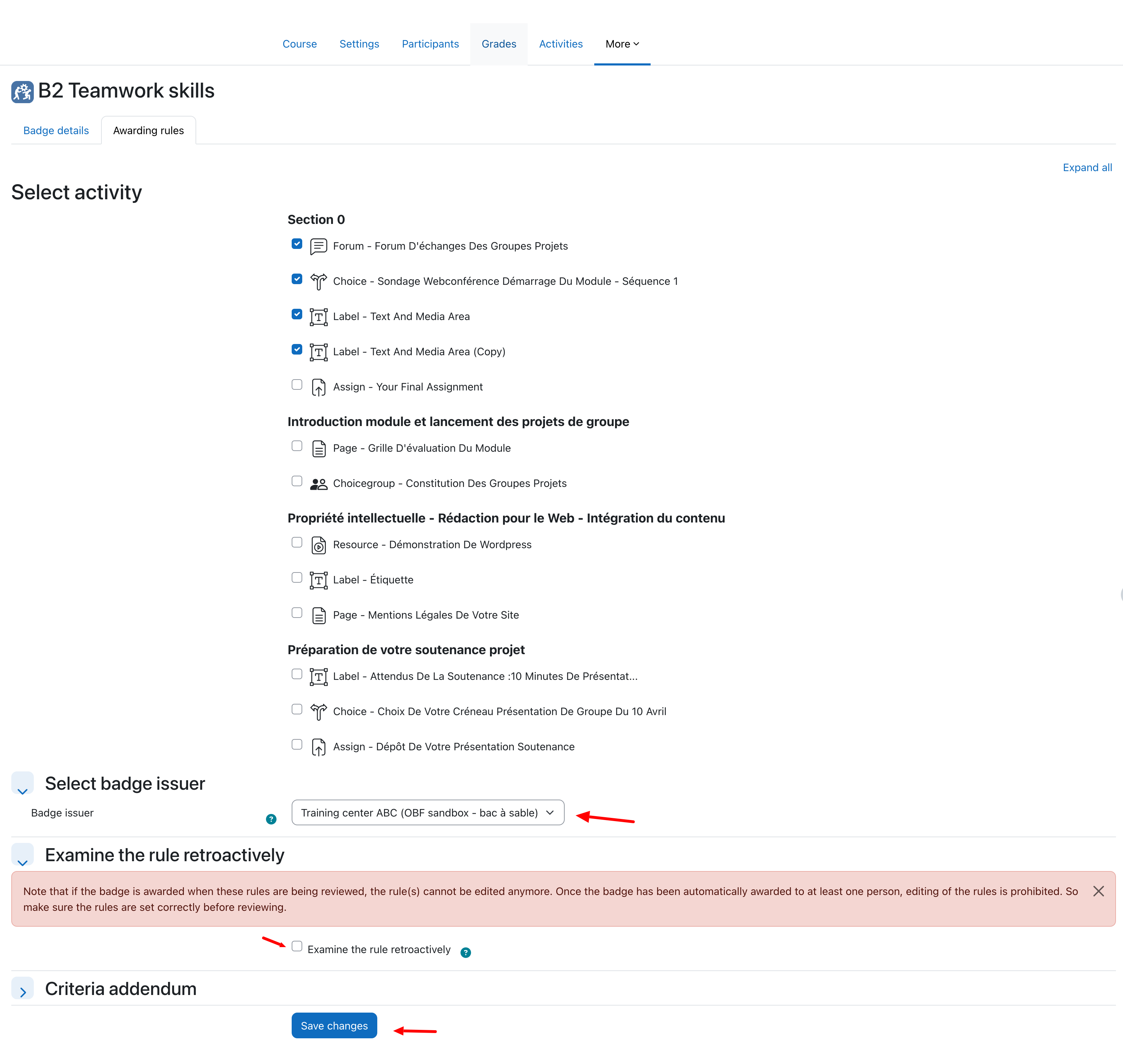 course. Also, if a badge has been issued at least once according to a certain rule, the rule cannot be edited