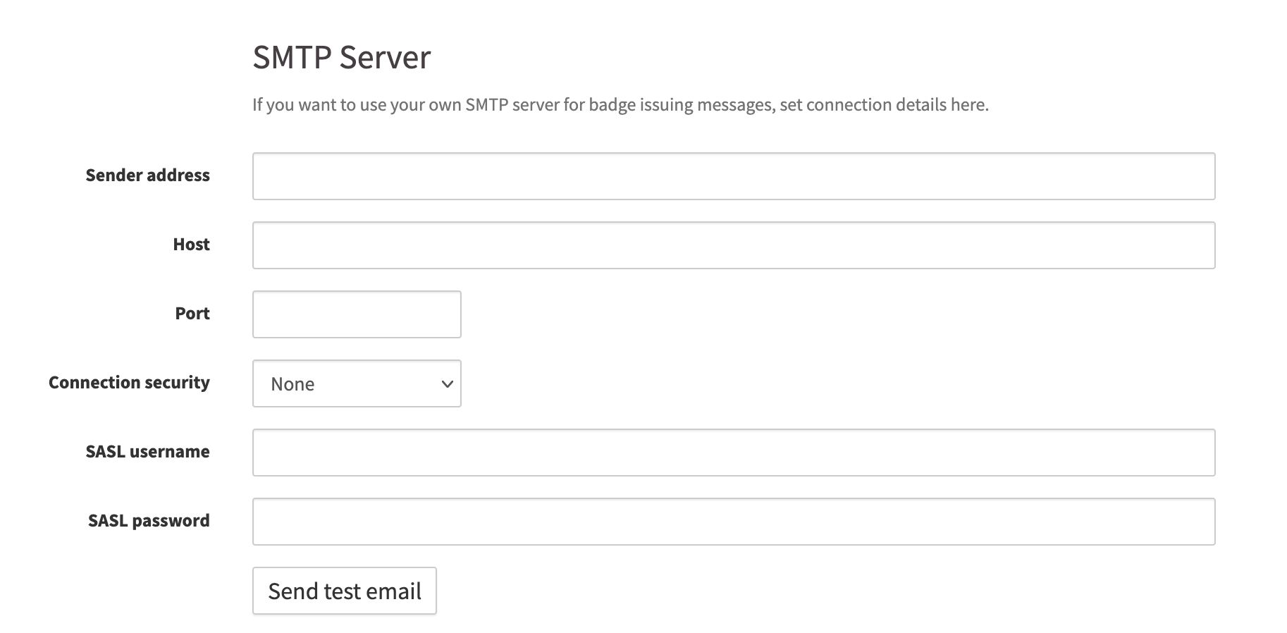 If you’re unsure about your SMTP settings or encounter delivery issues, contact your email provider or reach out to Open Badge Factory support for assistance.